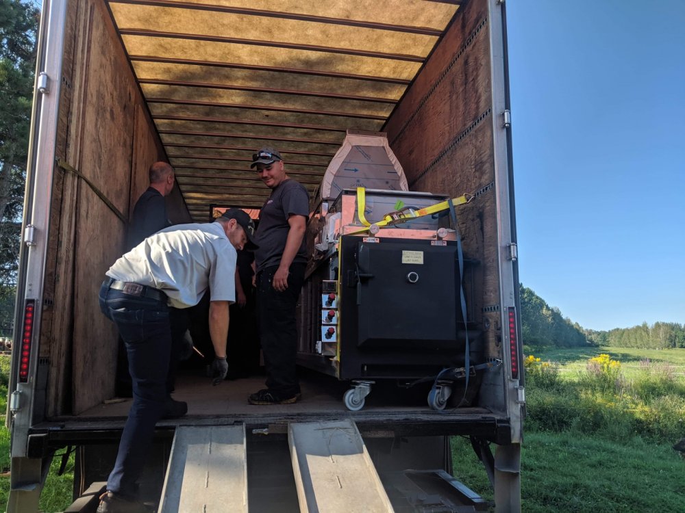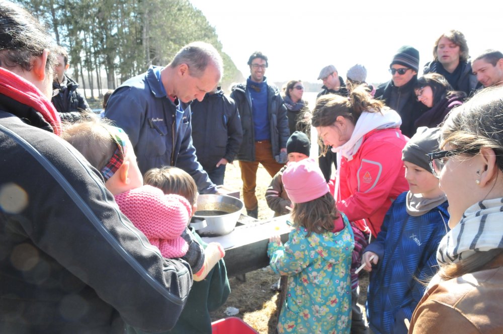 Nous sommes évidemment fébriles à l’idée de vous recevoir pour cette 28ième saison, d’autant plus que vous pourrez y voir nos nouvelles installations. En effet, vous pourrez constater sur place que nous avons changé notre évaporateur pour un plus imposant. Celui-ci pourra dorénavant bouillir 120 gallons d’eau à l’heure, comparativement à 45 gallons. On pourrait croire qu’un plus gros évaporateur consommera davantage en énergie, alors qu’ici c’est tout le contraire. Effectivement, nous brûlerons moins de bois pour plus d’eau bouillie, grâce à un ventilateur qui injecte de l’air dans la chambre à combustion et qui permet de rebrûler ses propres gaz. N’est-ce pas génial ?