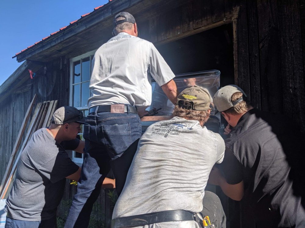 - Frédéric Lavergne et Guy Luc Lachapelle aux supports des multiples travaux manuels sur la ferme.