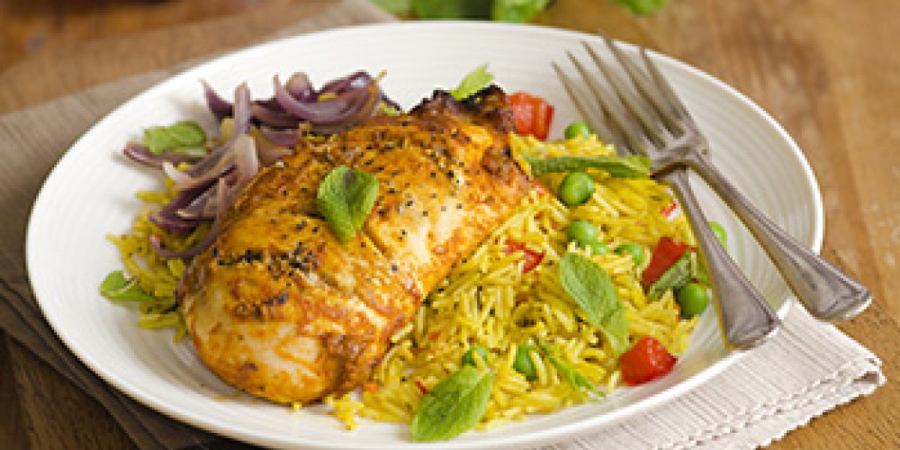 - Mélanger le yogourt, la poudre de piment chili, la coriandre, le cumin, le curcuma, le gingembre, l'ail, le jus de citron, le sel et le poivre dans un bol.